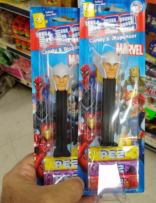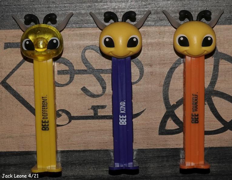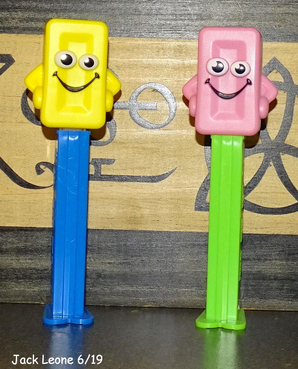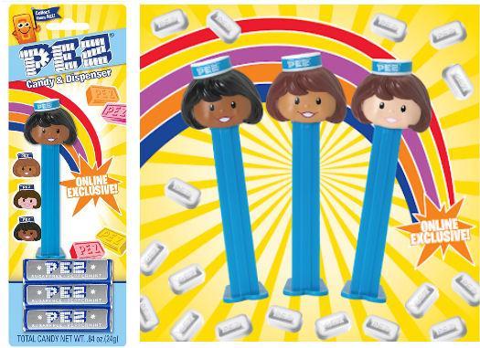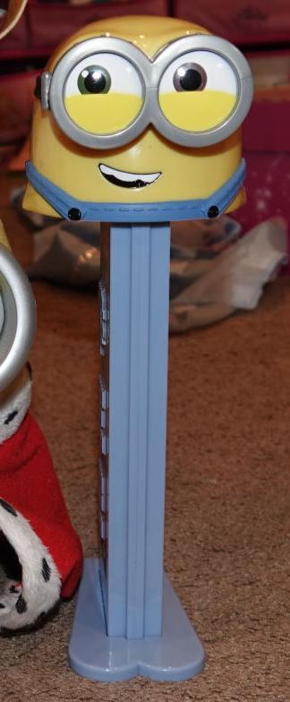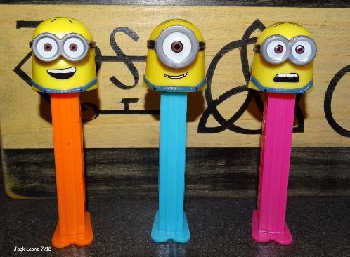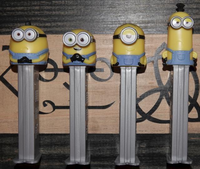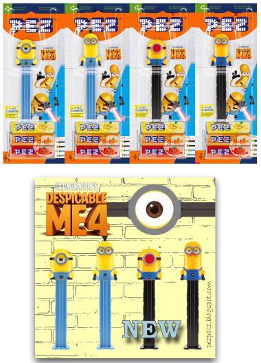 Despicable Me Minions Pez will be released in Europe in May and they will come with stickers to decorate the dispensers. The stem colors are also different # Dave is on pink, Stuart is on blue and Jerry is on orange. In the USA, they are all on light blue stems.