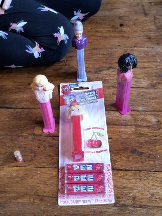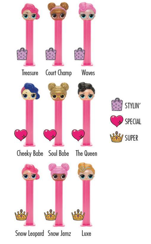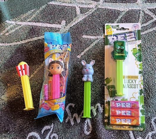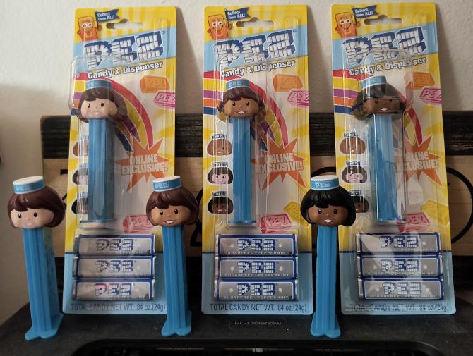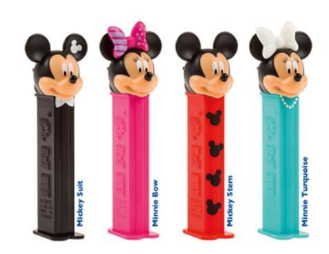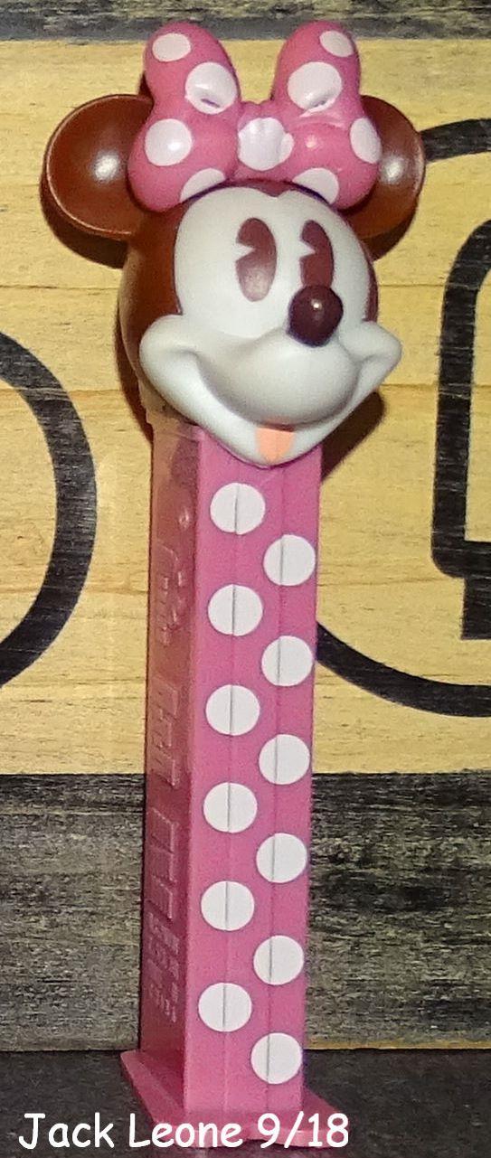 on the stem, making it special for this celebration. The Minnie Pez has polka dots on her stem and a polka dot bow in her hair.