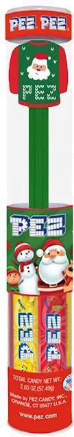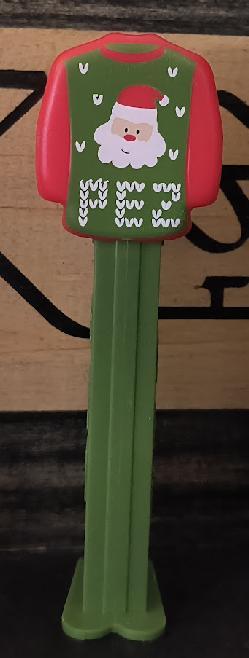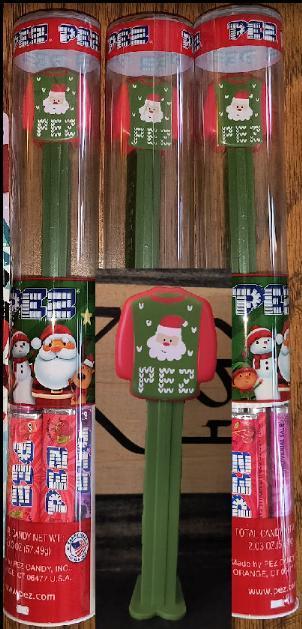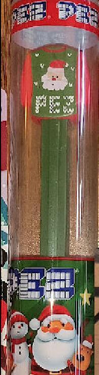 MIP - In tube only. Green sweater w/red sleeves. Santa and PEZ on front