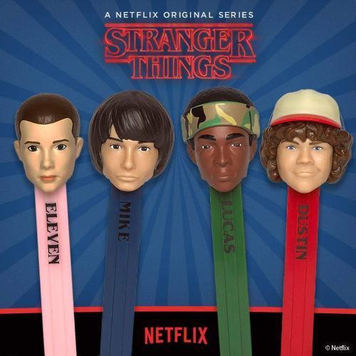 Secret experiments! Terrifying supernatural forces! One strange little girl! This Stranger Things series is Netflix's #1 TV series This includes: one Eleven Pez, one Mike Pez, one Lucas Pez and one Dustin Pez